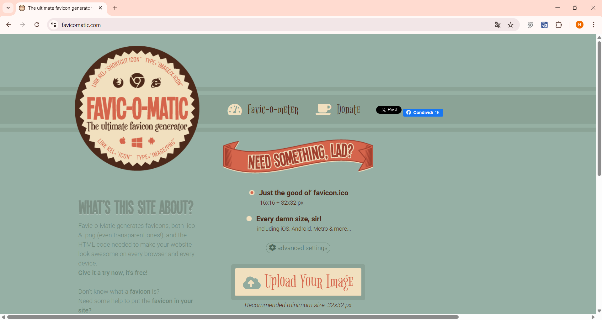 genfavicon.com giúp chuyển đổi hình ảnh sang favicon nhanh chóng. Tương tự như Real Favicon Generator, công cụ này cũng cung cấp sẵn mã HTML để chèn vào website.