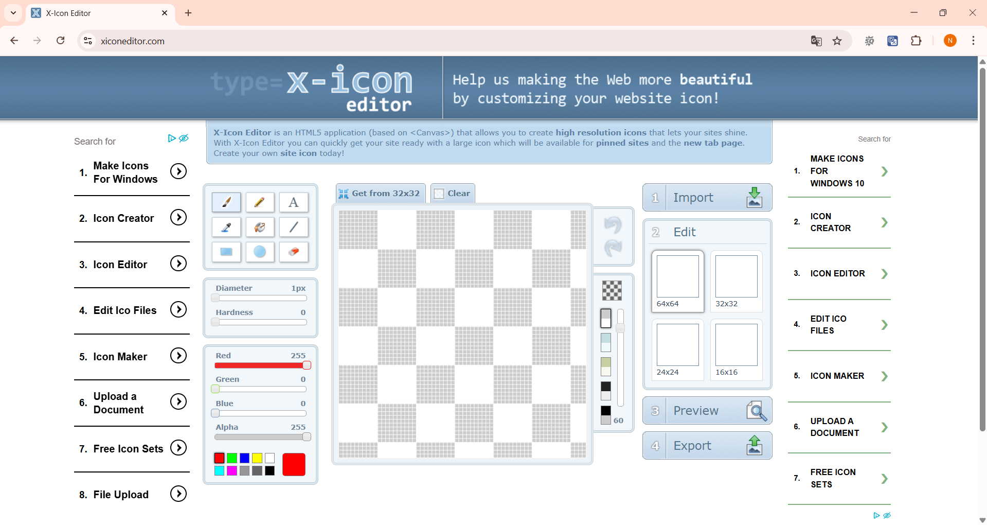 Xiconeditor.com là công cụ thiết kế favicon dạng pixel art cho phép vẽ icon trực tiếp trên trình duyệt với độ tùy biến cao.
