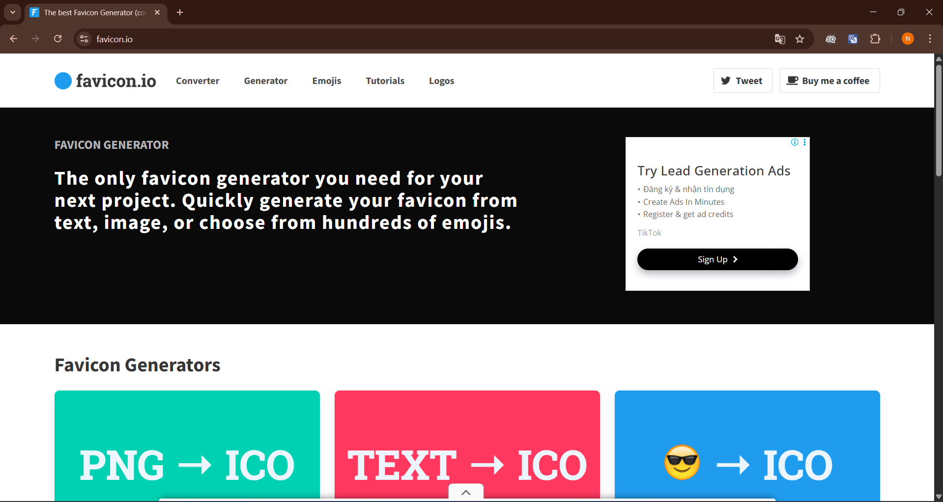 favicon.io là công cụ tạo favicon trực tuyến đơn giản, cho phép người dùng tạo favicon từ hình ảnh, văn bản hoặc emoji chỉ trong vài bước.