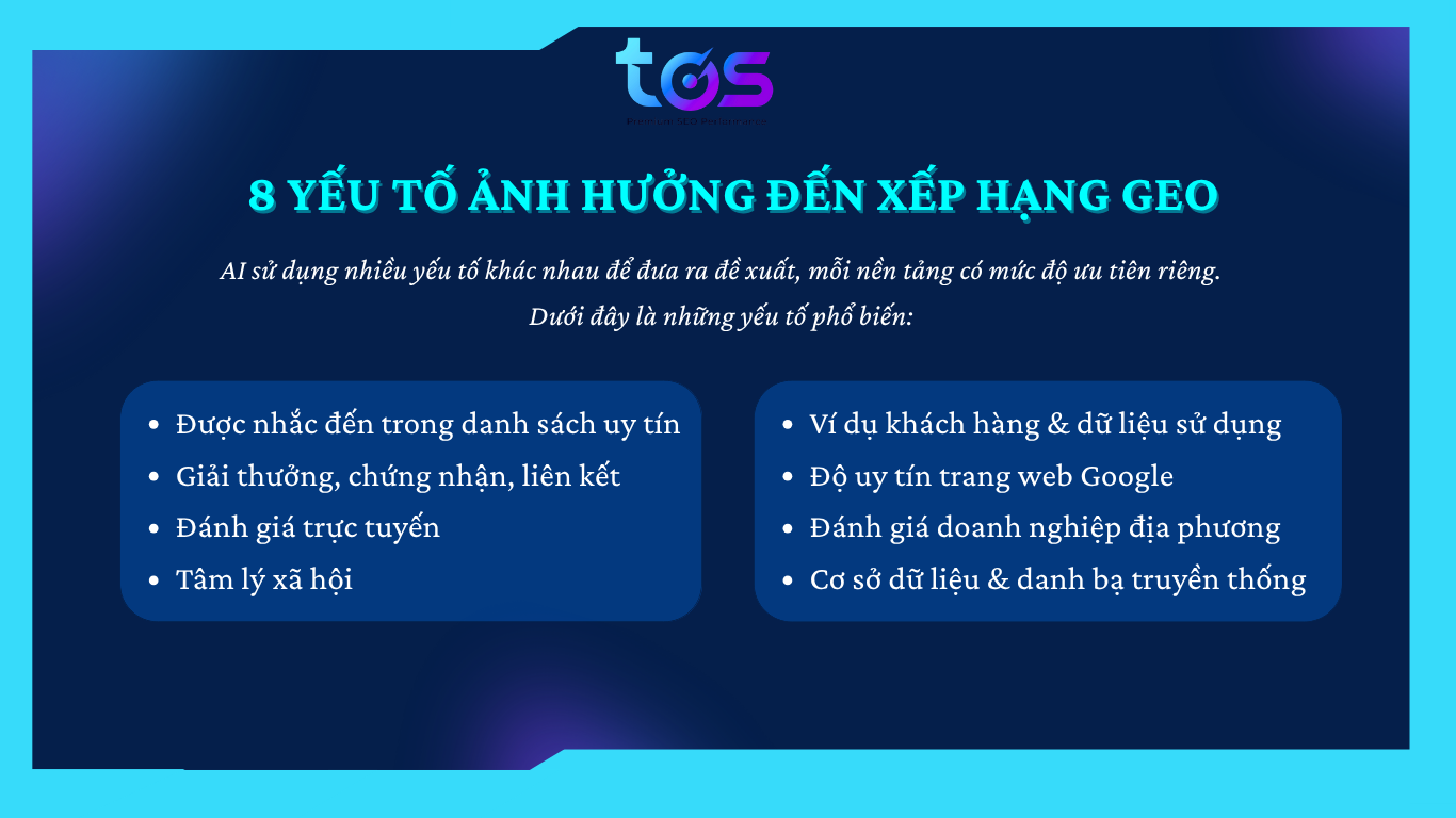 Các yếu tố ảnh hưởng đến xếp hạng GEO